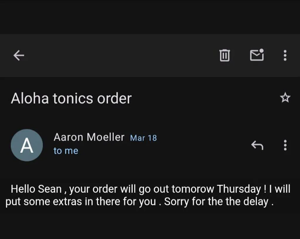 Ingredients: Filtered Water, Nobel Kava Blend (Hawaiian Awa, Vanuatu, Solomon, Fijian), Kava Extract, Hawaiian Salt.